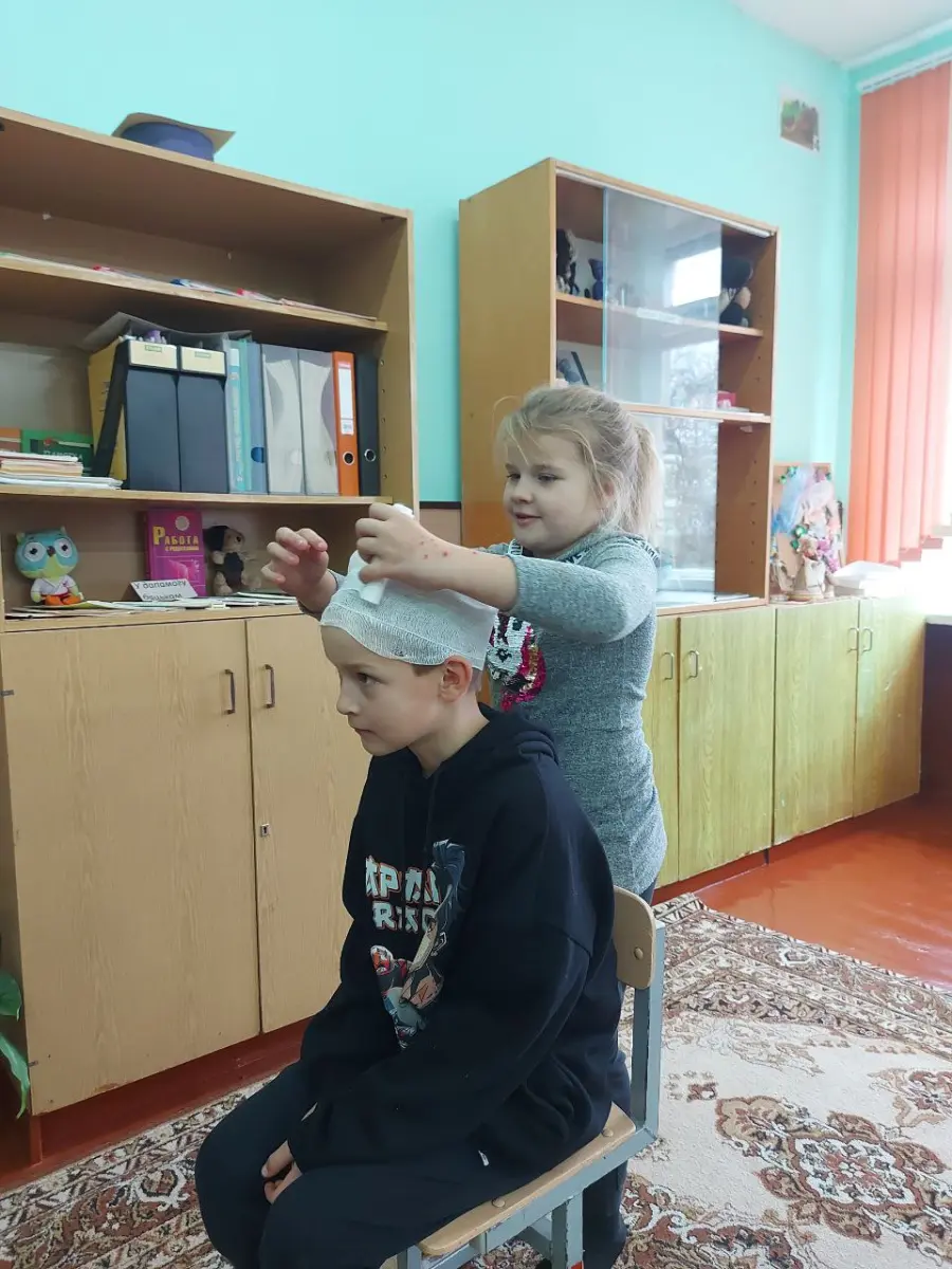 С особым интересом школьники попробовали себя в роли «санитарок», переносивших раненых, и оказывающих медицинскую помощь.